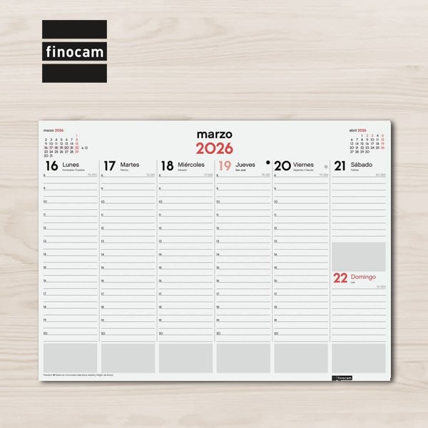 - Encolado en la parte inferior para arrancar semanalmente. Con mes anterior y posterior en cada página.